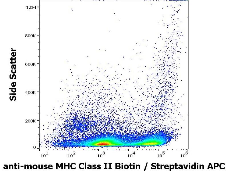 The rat monoclonal antibody M5/114 reacts with murine MHC class II glycoproteins. It recognizes a shared extracellular determinant on I-Ab, I-Ad, I-Aq, and I-Ed, I-Ek alloantigens, but it does not react with I-Af, I-Ak, I-As. This antibody can inhibit I-A-restricted T cell responses of the H-2b, H-2d, H-2q, H-2u but not H-2f, H-2k, H-2s haplotypes.