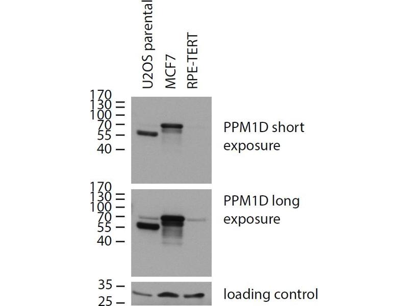 Protein phosphatase, Mg2+/Mn2+ dependent 1D,PPM1D is a Mg2+/Mn2+ dependent protein phosphatase 1D with inducible expression in response to various types of environmental stress. This expression is p53-dependent, and subsequently PPM1D negatively regulates the p53-mediated transcription, thus it suppresses the apoptosis. PPM1D contributes to development of carcinomas, and seems to be a promissing therapeutic target. Amplification of PPM1D is associated with breast cancer.,WIP1, Protein phosphatase 1D, JDVS, WIP1, IDDGIP