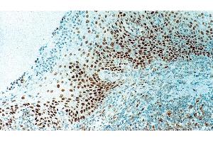 Immunohistochemistry: Typical working dilution 1:25-1:50. High temperature antigen unmasking technique. 60 minutes primary antibody incubation at 25°C. Standard ABC technique. Western Blotting: Typical working dilution 1:250.
