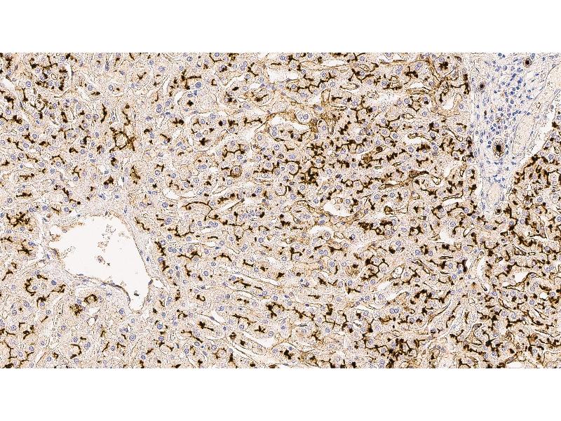 Immunohistochemistry on paraffin sections. Heat Induced Epitope Retrieval (HIER): Epitope Retrieval Solution pH 6. Suggested dilution: 1:80 for 30 minutes at 25 °C. This is provided as a guide and users should determine their own optimal working dilutions. Immunohistochemical (IHC) staining techniques allow for the visualization of antigens via the sequential application of a specific antibody to the antigen (primary antibody), a secondary antibody to the primary antibody and an enzyme complex with a chromogenic substrate with interposed washing steps. The enzymatic activation of the chromogen results in a visible reaction product at the antigen site. The specimen may then be counterstained and coverslipped. Results are interpreted using a light microscope.