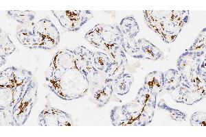 Immunohistochemistry on paraffin sections. Heat Induced Epitope Retrieval (HIER): Epitope Retrieval Solution pH 6. Suggested dilution: 1:200 for 30 minutes at 25 °C. This is provided as a guide and users should determine their own optimal working dilutions. Immunohistochemical (IHC) staining techniques allow for the visualization of antigens via the sequential application of a specific antibody to the antigen (primary antibody), a secondary antibody to the primary antibody and an enzyme complex with a chromogenic substrate with interposed washing steps. The enzymatic activation of the chromogen results in a visible reaction product at the antigen site. The specimen may then be counterstained and coverslipped. Results are interpreted using a light microscope.
