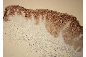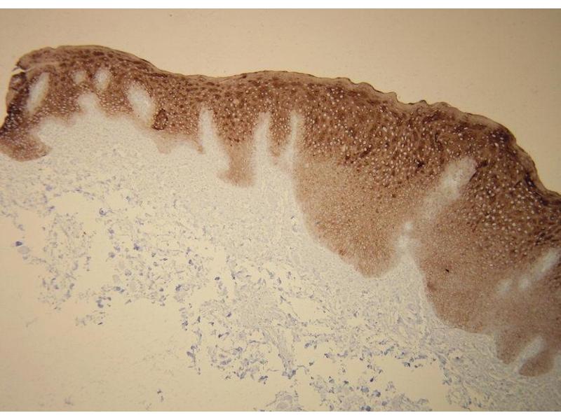 - Peptide derived from C-terminal sequence of human cytokeratin 6. Antibody recognizes the epitope (identical with cytokeratin 5) between Thr548 - His564.