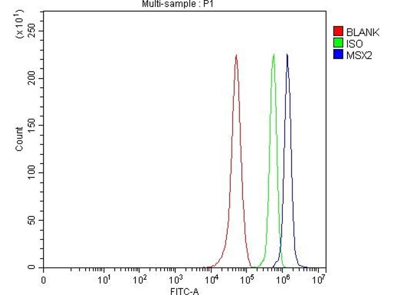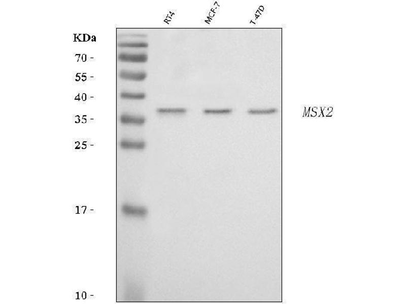 Background: Homeobox protein MSX-2 is a protein that in humans is encoded by the MSX2 gene. This gene encodes a member of the muscle segment homeobox gene family. The encoded protein is a transcriptional repressor whose normal activity may establish a balance between survival and apoptosis of neural crest-derived cells required for proper craniofacial morphogenesis. The encoded protein may also have a role in promoting cell growth under certain conditions and may be an important target for the RAS signaling pathways. Mutations in this gene are associated with parietal foramina 1 and craniosynostosis type 2.