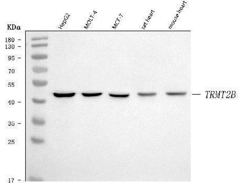 - Anti-TRMT2B Antibody (ABIN7599456). Tested in ELISA, Flow Cytometry, IF, IHC, WB applications. This antibody reacts with Human, Mouse, Rat. This is a premium antibody that guarantees superior quality, high affinity, and strong signals with minimal background in Western blot applications.