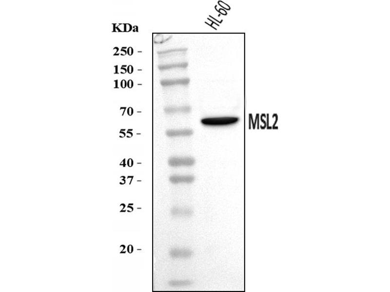 Background: MSL2 (MSL Complex Subunit 2) is a protein coding gene located on human chromosome 3q22.3. MSL2 is also known as MSL-2, MSL2L1 and RNF184. The human MSL2 gene encodes a 62541 Da protein containing 577 amino acids. The MSL2 protein is ubiquitously expressed in bone marrow, lymph node and other tissues. Among its related pathways are Chromatin organization and Chromatin Regulation / Acetylation. MSL2 is related to ligase activity. MSL2 is associated with some diseases, such as Atrial Septal Defect 3.