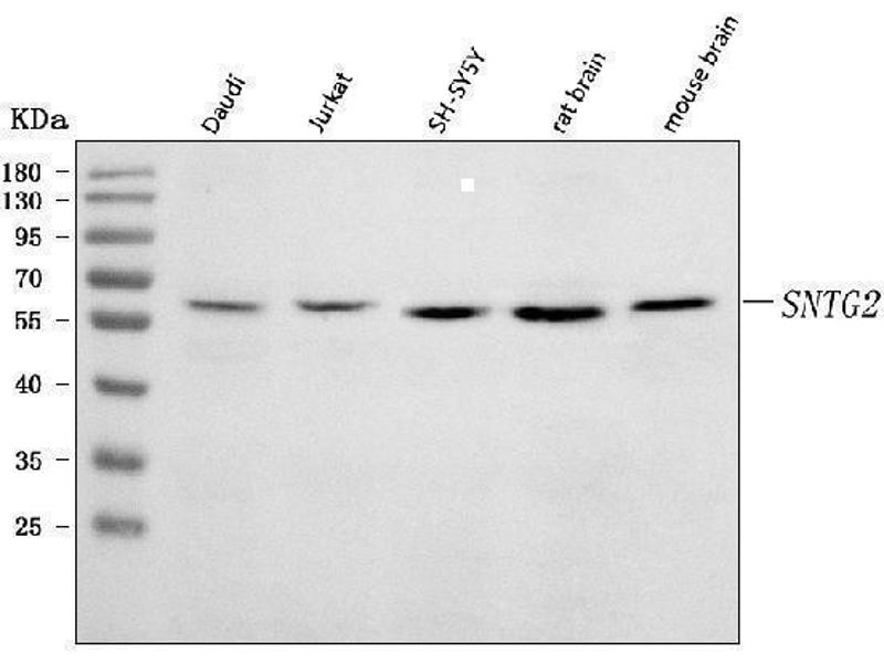 - Anti-SNTG2 Antibody (ABIN7599617). Tested in ELISA, Flow Cytometry, WB applications. This antibody reacts with Human, Mouse, Rat. This is a premium antibody that guarantees superior quality, high affinity, and strong signals with minimal background in Western blot applications.