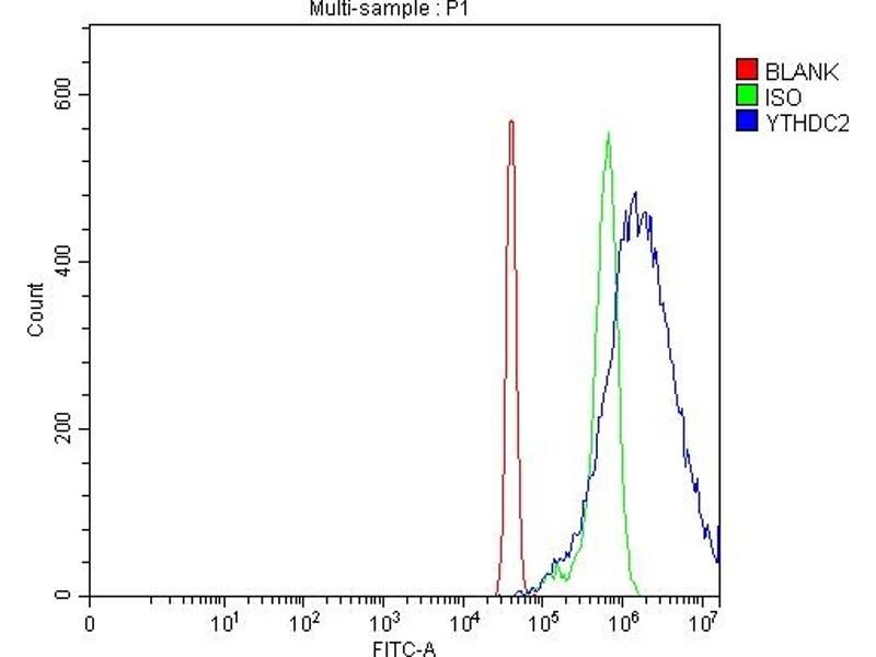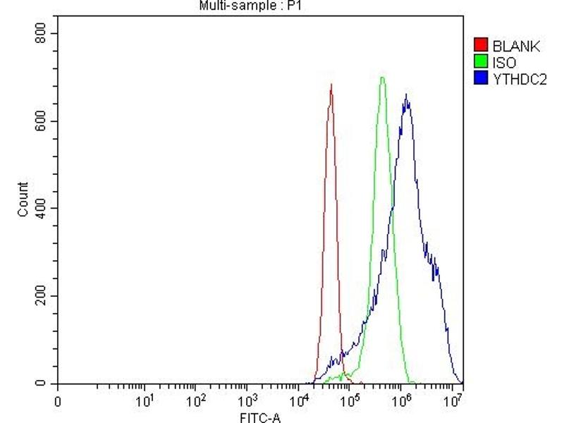 Background: YTH domain containing 2 is a protein that in humans is encoded by the YTHDC2 gene. This gene encodes a member of the DEAH (Asp-Glu-Ala-His) subfamily of proteins, part of the DEAD (Asp-Glu-Ala-Asp) box family of RNA helicases. The encoded protein binds to N6-methyladenosine, a common modified RNA nucleotide that is enriched in the stop codons and 3' UTRs of eukaryotic messenger RNAs. Binding of proteins to this modified nucleotide may regulate mRNA translation and stability. This gene may be associated with susceptibility to pancreatic cancer in human patients, and knockdown of this gene resulted in reduced proliferation in a human liver cancer cell line.