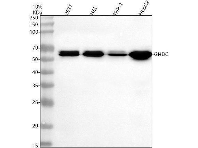- Anti-GHDC Antibody (ABIN7599686). Tested in WB, ELISA applications. This antibody reacts with Human. This is a premium antibody that guarantees superior quality, high affinity, and strong signals with minimal background in Western blot applications.