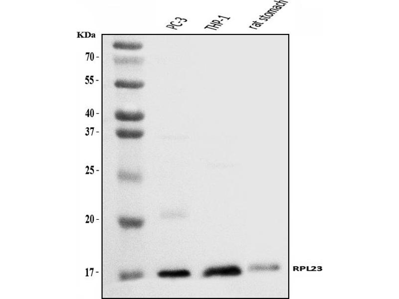 - Anti-RPL23 Antibody (ABIN7599808). Tested in ELISA, Flow Cytometry, IHC, WB applications. This antibody reacts with Human, Mouse, Rat. This is a premium antibody that guarantees superior quality, high affinity, and strong signals with minimal background in Western blot applications.