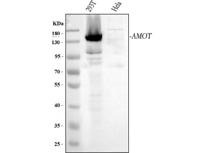 Background: Angiomotin (AMOT) is a protein that in humans is encoded by the AMOT gene. This gene belongs to the motin family of angiostatin binding proteins characterized by conserved coiled-coil domains and C-terminal PDZ binding motifs. The encoded protein is expressed predominantly in endothelial cells of capillaries as well as larger vessels of the placenta where it may mediate the inhibitory effect of angiostatin on tube formation and the migration of endothelial cells toward growth factors during the formation of new blood vessels. Alternative splicing results in multiple transcript variants encoding different isoforms.