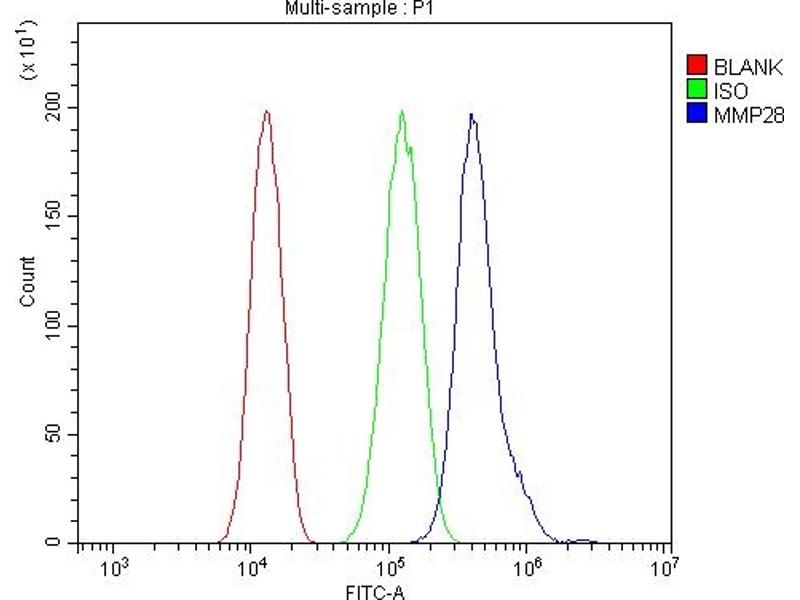 - Anti-MMP28 Antibody (ABIN7599865). Tested in ELISA, Flow Cytometry, IF, ICC, WB applications. This antibody reacts with Human. This is a premium antibody that guarantees superior quality, high affinity, and strong signals with minimal background in Western blot applications.