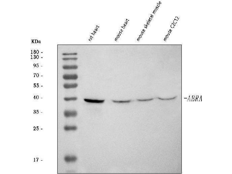 - Anti-ABRA Antibody (ABIN7599939). Tested in ELISA, WB applications. This antibody reacts with Human, Mouse, Rat. This is a premium antibody that guarantees superior quality, high affinity, and strong signals with minimal background in Western blot applications.