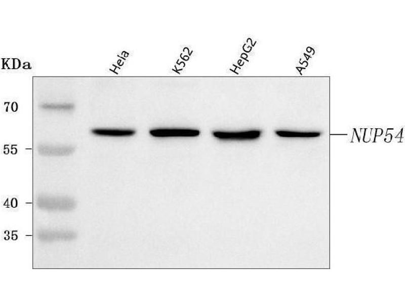 - Anti-NUP54 Antibody (ABIN7599968). Tested in ELISA, WB applications. This antibody reacts with Human. This is a premium antibody that guarantees superior quality, high affinity, and strong signals with minimal background in Western blot applications.