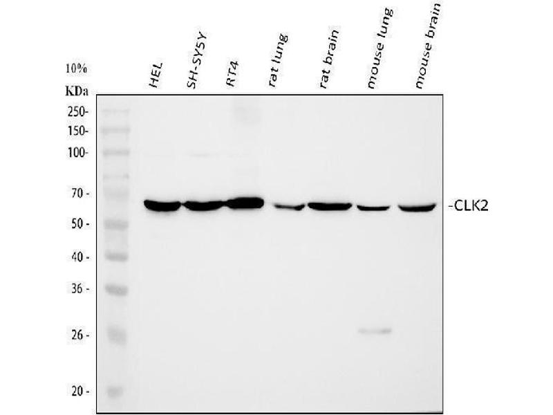 - Anti-CLK2 Antibody (ABIN7600043). Tested in ELISA, Flow Cytometry, WB applications. This antibody reacts with Human, Mouse, Rat. This is a premium antibody that guarantees superior quality, high affinity, and strong signals with minimal background in Western blot applications.