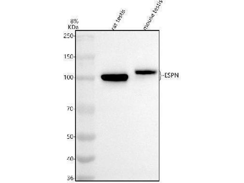 - Anti-ESPN Antibody (ABIN7600060). Tested in WB, ELISA applications. This antibody reacts with Mouse, Rat. This is a premium antibody that guarantees superior quality, high affinity, and strong signals with minimal background in Western blot applications.