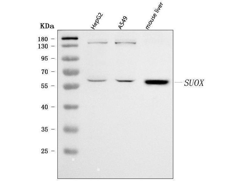 - Anti-Sulfite oxidase/SUOX Antibody (ABIN7600212). Tested in ELISA, Flow Cytometry, WB applications. This antibody reacts with Human, Mouse. This is a premium antibody that guarantees superior quality, high affinity, and strong signals with minimal background in Western blot applications.
