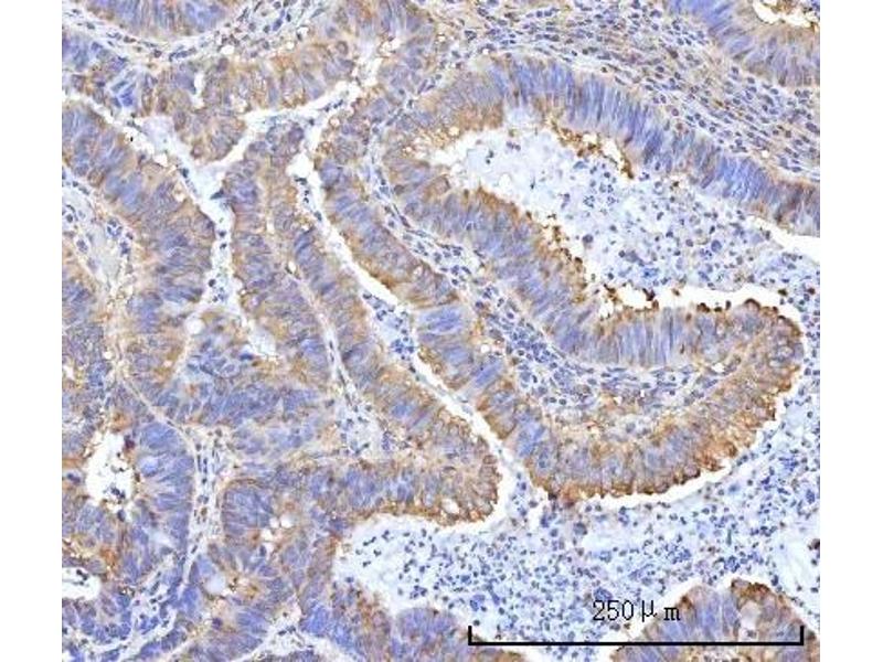 Tissue Specificity: Widely expressed (PubMed:11097842). Expressed strongly in colorectal cancer cells (at protein level) (PubMed:28040436). Expressed strongly in colorectal cancer tissues compared to wild-type colon samples (at protein level) (PubMed:28040436). Expressed strongly in colorectal cancer tissues compared to wild-type colon samples (PubMed:28040436).