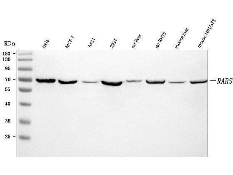 - Anti-RARS/RARS1 Antibody (ABIN7600223). Tested in ELISA, Flow Cytometry, IF, IHC, ICC, WB applications. This antibody reacts with Human, Mouse, Rat. This is a premium antibody that guarantees superior quality, high affinity, and strong signals with minimal background in Western blot applications.