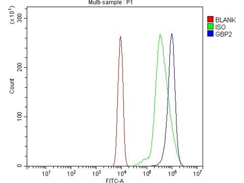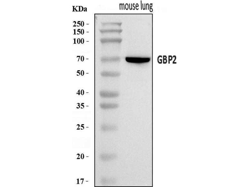Background: Interferon-induced guanylate-binding protein 2 is a protein that in humans is encoded by the GBP2 gene. This gene belongs to the guanine-binding protein (GBP) family, which includes interferon-induced proteins that can bind to guanine nucleotides (GMP, GDP and GTP). The encoded protein is a GTPase which hydrolyzes GTP, predominantly to GDP. The protein may play a role as a marker of squamous cell carcinomas.