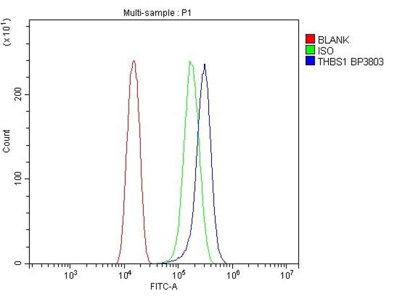 - Anti-Thrombospondin/THBS1 Antibody (ABIN7600407). Tested in ELISA, Flow Cytometry, WB applications. This antibody reacts with Human. This is a premium antibody that guarantees superior quality, high affinity, and strong signals with minimal background in Western blot applications.