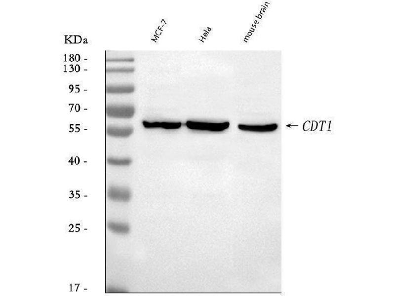 Background: CDT1 (Chromatin licensing and DNA replication factor 1) is a protein that in humans is encoded by the CDT1 gene. The protein encoded by this gene is involved in the formation of the pre-replication complex that is necessary for DNA replication. The encoded protein can bind geminin, which prevents replication and may function to prevent this protein from initiating replication at inappropriate origins. Phosphorylation of this protein by cyclin A-dependent kinases results in degradation of the protein.