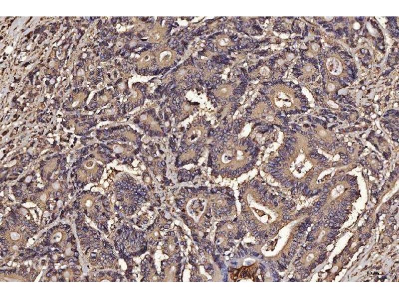Tissue Specificity: Expressed at very high levels in colon carcinoma with lower levels in normal colon and ileum and lowest levels in kidney and muscle.