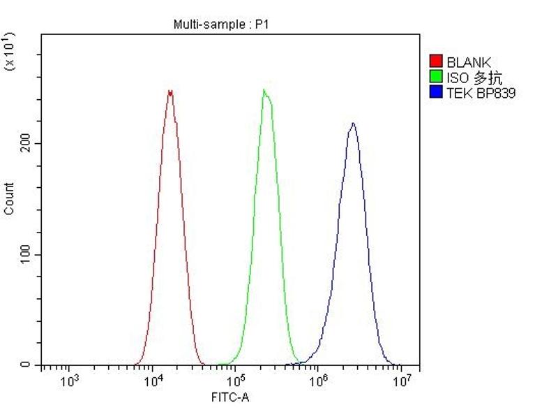 Background: TIE2, also known as TEK tyrosine kinase, is mapped to 9p21.2. This gene encodes a receptor that belongs to the protein tyrosine kinase Tie2 family. The encoded protein possesses a unique extracellular region that contains two immunoglobulin-like domains, three epidermal growth factor (EGF)-like domains and three fibronectin type III repeats. The ligand angiopoietin-1 binds to this receptor and mediates a signaling pathway that functions in embryonic vascular development. Immunoblotting showed that TIE2 expression was increased by thyroid-stimulating hormone and agents that increased intracellular cAMP. HSCs expressing the receptor tyrosine kinase TIE2 are quiescent and antiapoptotic and comprise a side population of HSCs that adhere to osteoblasts in the bone marrow niche.