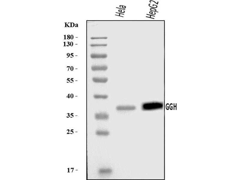 - Anti-GGH Antibody (ABIN7600902). Tested in ELISA, WB applications. This antibody reacts with Human. This is a premium antibody that guarantees superior quality, high affinity, and strong signals with minimal background in Western blot applications.