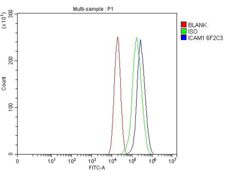- Anti-ICAM1 Antibody (monoclonal, 6F2C3) (ABIN7601066). Tested in Flow Cytometry, IHC, WB applications. This antibody reacts with Human. This is a premium antibody that guarantees superior quality, high affinity, and strong signals with minimal background in Western blot applications.