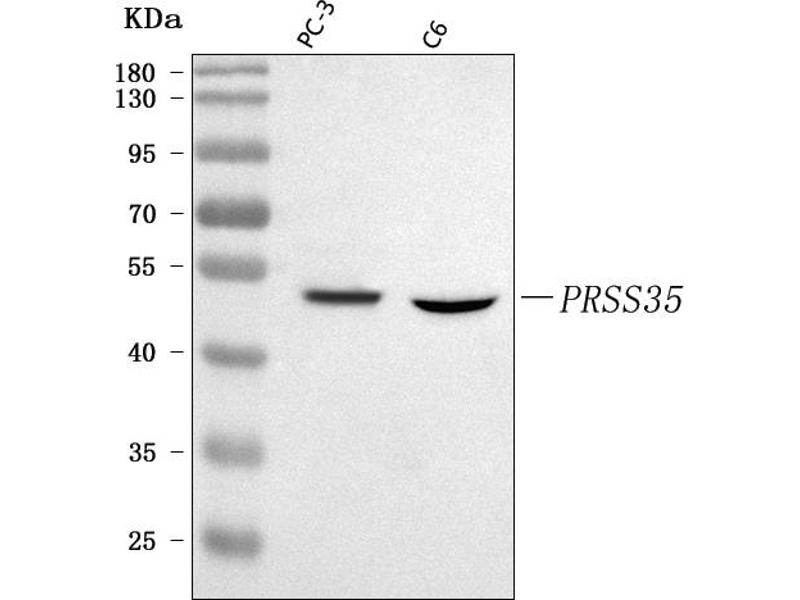 - Anti-PRSS35 Antibody (ABIN7601219). Tested in ELISA, WB applications. This antibody reacts with Human, Rat. This is a premium antibody that guarantees superior quality, high affinity, and strong signals with minimal background in Western blot applications.