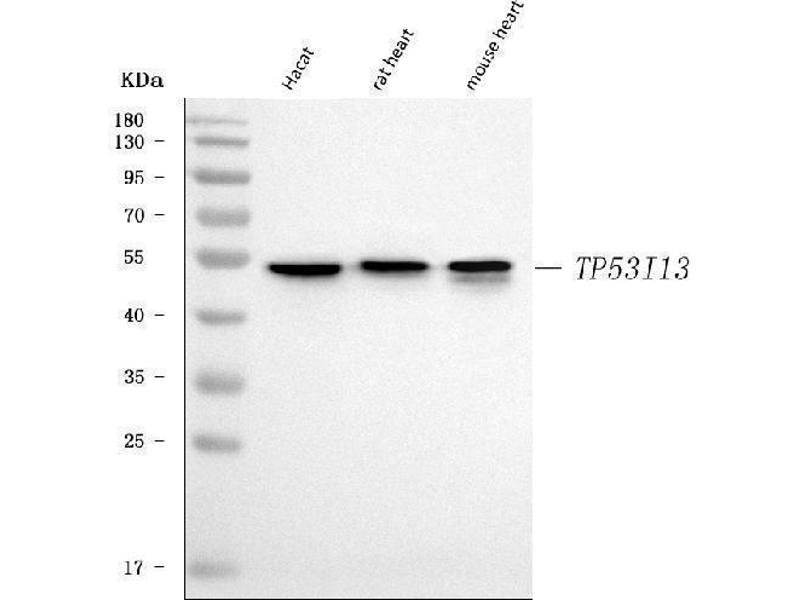 - Anti-TP53I13 Antibody (ABIN7601220). Tested in ELISA, IF, IHC, WB applications. This antibody reacts with Human, Mouse, Rat. This is a premium antibody that guarantees superior quality, high affinity, and strong signals with minimal background in Western blot applications.