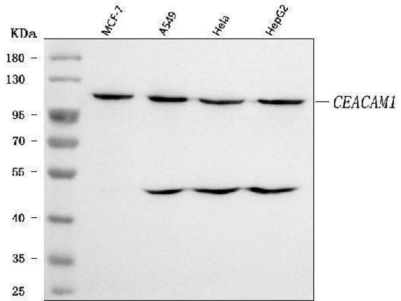 - Anti-CEACAM1 Antibody (ABIN7601244). Tested in ELISA, WB applications. This antibody reacts with Human. This is a premium antibody that guarantees superior quality, high affinity, and strong signals with minimal background in Western blot applications.