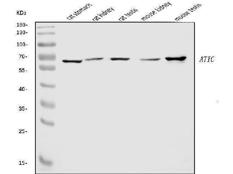 - Anti-ATIC Antibody (ABIN7601511). Tested in ELISA, Flow Cytometry, WB applications. This antibody reacts with Human, Mouse, Rat. This is a premium antibody that guarantees superior quality, high affinity, and strong signals with minimal background in Western blot applications.