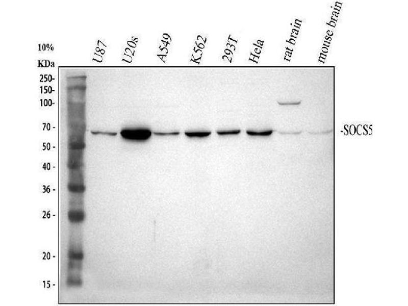 Background: Suppressor of cytokine signaling 5 is a protein that in humans is encoded by the SOCS5 gene. It is mapped to 2p21. The protein encoded by this gene contains a SH2 domain and a SOCS BOX domain. The protein thus belongs to the suppressor of cytokine signaling (SOCS) family, also known as STAT-induced STAT inhibitor (SSI) protein family. SOCS family members are known to be cytokine-inducible negative regulators of cytokine signaling. The specific function of this protein has not yet been determined. Two alternatively spliced transcript variants encoding an identical protein have been reported.