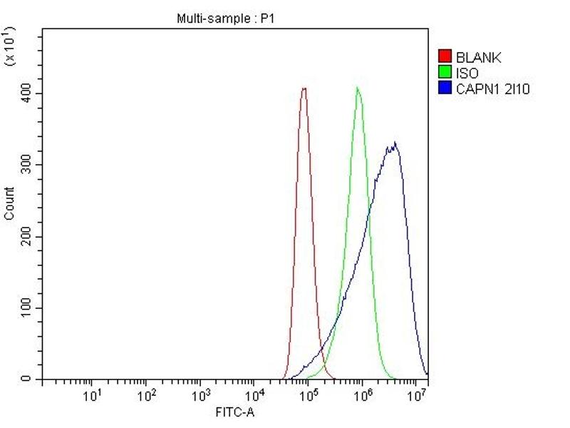 - Anti-Calpain 1 Antibody (monoclonal, 2I10) (ABIN7601600). Tested in Flow Cytometry, IF, ICC, WB applications. This antibody reacts with Human. This is a premium antibody that guarantees superior quality, high affinity, and strong signals with minimal background in Western blot applications.