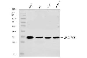 - Anti-HSD17B8 Antibody (ABIN7601689). Tested in ELISA, Flow Cytometry, WB applications. This antibody reacts with Human, Mouse, Rat. This is a premium antibody that guarantees superior quality, high affinity, and strong signals with minimal background in Western blot applications.