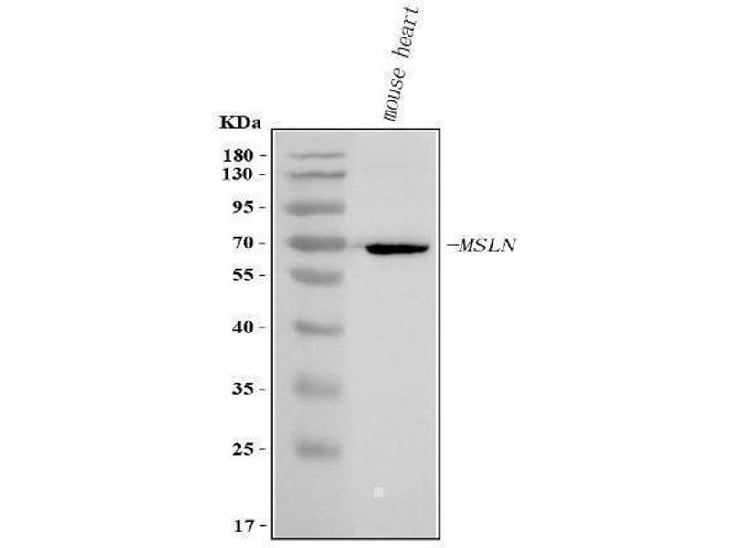 - Anti-Mesothelin/Msln Antibody (ABIN7601746). Tested in ELISA, WB applications. This antibody reacts with Mouse. This is a premium antibody that guarantees superior quality, high affinity, and strong signals with minimal background in Western blot applications.