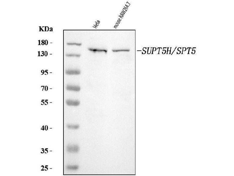 - Anti-SPT5/SUPT5H Antibody (ABIN7601985). Tested in ELISA, Flow Cytometry, IF, IHC, ICC, WB applications. This antibody reacts with Human, Mouse. This is a premium antibody that guarantees superior quality, high affinity, and strong signals with minimal background in Western blot applications.