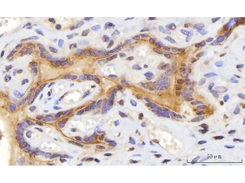 Tissue Specificity: Isoform 1 is expressed in the jejunum, ileum, cecum and ascending colon intestine. Isoform 2 is xpressed in the gallbladder, duodenum, jejunum, ileum, cecum, ascending, transverse and descending colon, sigmoid colon and rectum. Isoform 2 is expressed in colorectal adenocarcinomas and their adjacent normal mucosa.