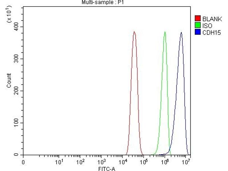 Background: Cadherin-15 is a protein that in humans is encoded by the CDH15 gene. This gene is a member of the cadherin superfamily of genes, encoding calcium-dependent intercellular adhesion glycoproteins. Cadherins consist of an extracellular domain containing 5 cadherin domains, a transmembrane region, and a conserved cytoplasmic domain. Transcripts from this particular cadherin are expressed in myoblasts and upregulated in myotubule-forming cells. The protein is thought to be essential for the control of morphogenetic processes, specifically myogenesis, and may provide a trigger for terminal muscle cell differentiation.