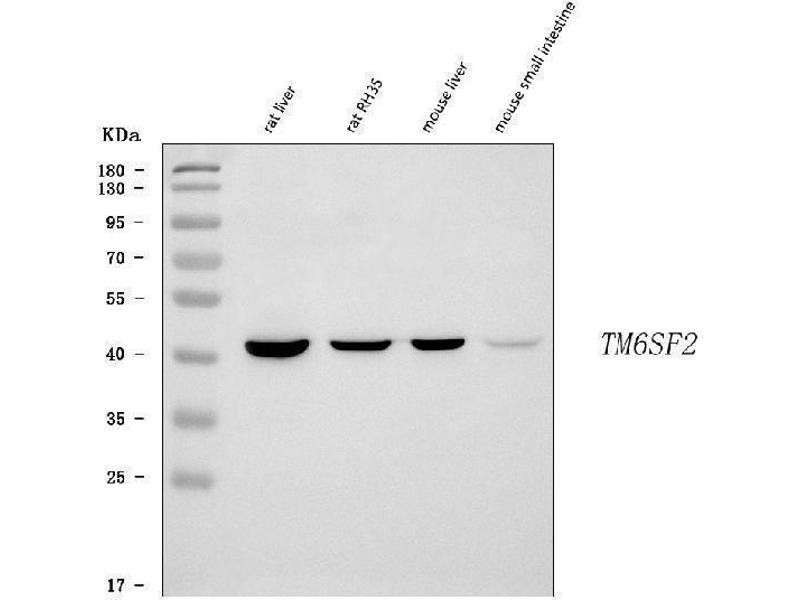 - Anti-TM6SF2 Antibody (ABIN7602448). Tested in ELISA, WB applications. This antibody reacts with Human, Mouse, Rat. This is a premium antibody that guarantees superior quality, high affinity, and strong signals with minimal background in Western blot applications.