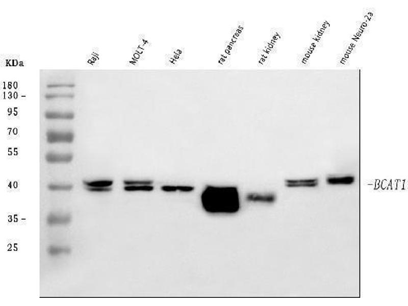 Background: BCAT1, Branched-chain Aminotransferase1, is also know as BCT1. The BCAT1 gene is highly expressed early in embryogenesis, and during organogenesis its expression is localized to the neural tube, the somites, and the mesonephric tubules. The gene is also expressed in several MYC-based tumors. The BCAT1 gene is mapped to chromosome 12. Lack of the enzyme BCT can cause auxotroph, a kind of auxotrophic mutant in Chinese-hamster ovary cells that lacks the ability to grow if alpha-ketoisovaleric acid, alpha-ketoisocaproic acid, and alpha-keto-beta-methylvaleric acid are substituted for valine, leucine, and isoleucine in the culture medium.