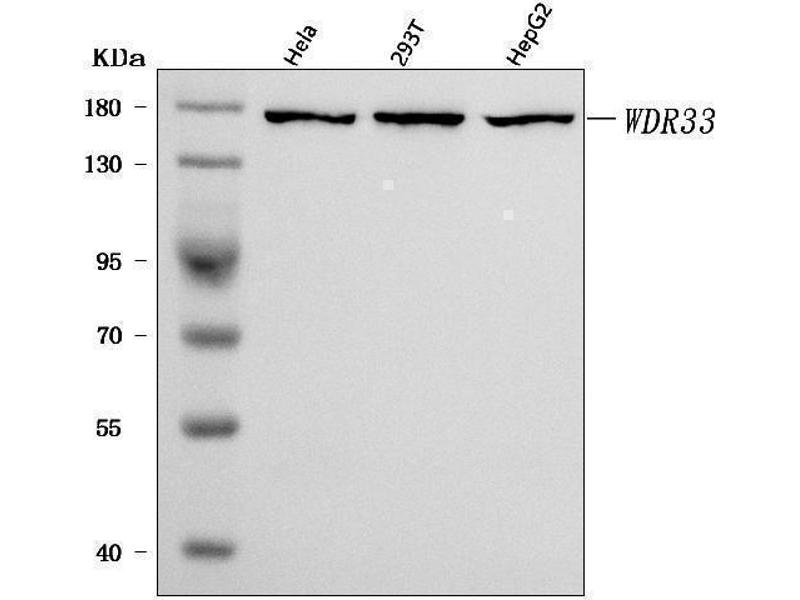 - Anti-WDR33 Antibody (ABIN7602597). Tested in ELISA, Flow Cytometry, WB applications. This antibody reacts with Human. This is a premium antibody that guarantees superior quality, high affinity, and strong signals with minimal background in Western blot applications.