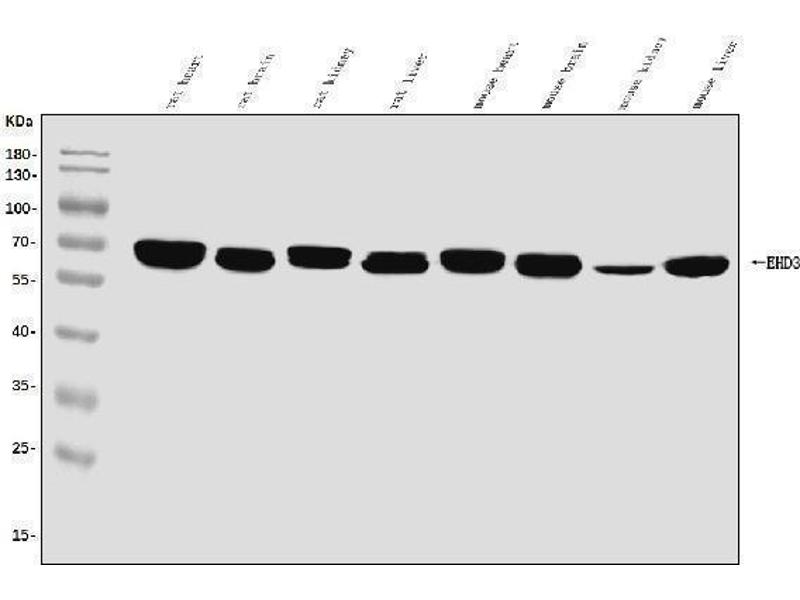 - A synthetic peptide corresponding to a sequence at the C-terminus of human EHD3, which shares 93.8% and 100% amino acid (aa) sequence identity with mouse and rat EHD3, respectively.
