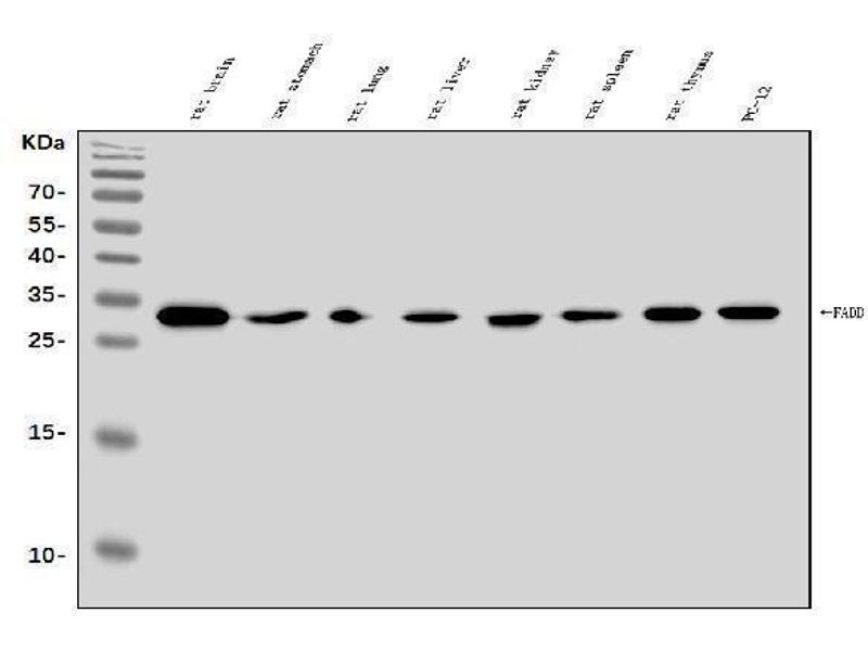 - Anti-FADD Antibody (ABIN7602804). Tested in Flow Cytometry, IHC, WB applications. This antibody reacts with Mouse, Rat. This is a premium antibody that guarantees superior quality, high affinity, and strong signals with minimal background in Western blot applications.