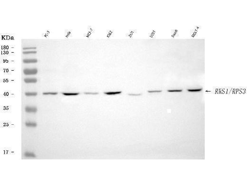 - A synthetic peptide corresponding to a sequence at the C-terminus of human RRS1, which shares 95.5% and 100% amino acid (aa) sequence identity with mouse and rat RRS1, respectively.