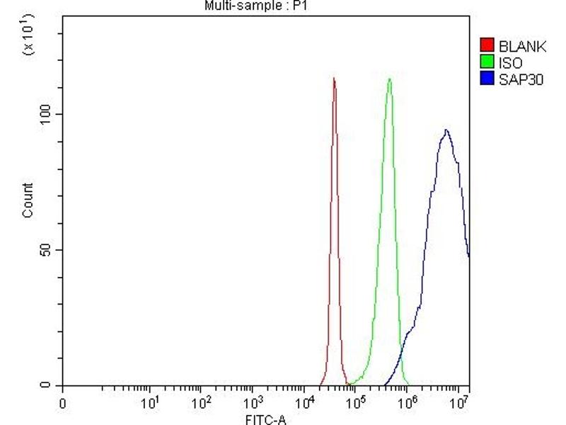 - Anti-SAP30 Antibody (ABIN7602922). Tested in Flow Cytometry, WB applications. This antibody reacts with Human. This is a premium antibody that guarantees superior quality, high affinity, and strong signals with minimal background in Western blot applications.