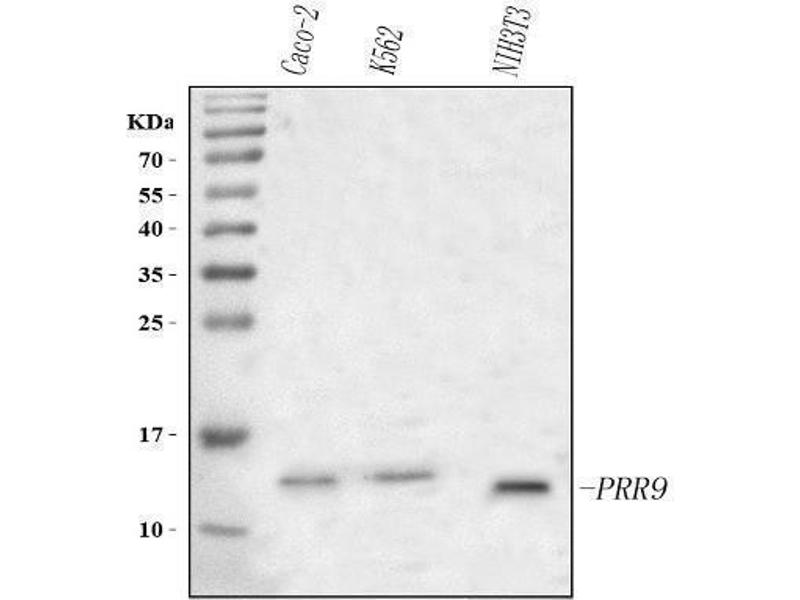 - Anti-PRR9 Antibody (ABIN7603082). Tested in WB applications. This antibody reacts with Human, Mouse. This is a premium antibody that guarantees superior quality, high affinity, and strong signals with minimal background in Western blot applications.