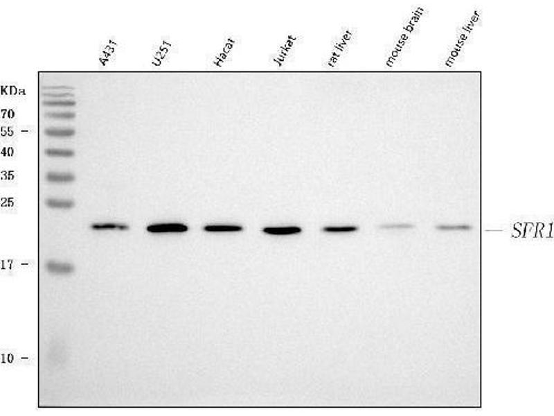 - Anti-SFR1 Antibody (ABIN7603090). Tested in Flow Cytometry, WB applications. This antibody reacts with Human, Mouse, Rat. This is a premium antibody that guarantees superior quality, high affinity, and strong signals with minimal background in Western blot applications.