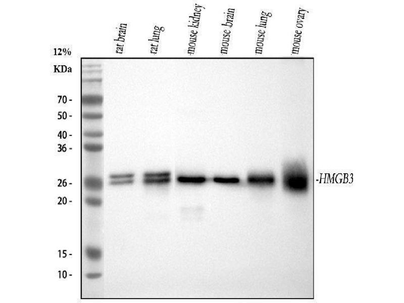 Synonyms: "chromosomal protein, Nonhistone, HMG4 antibody|High mobility group (nonhistone chromosomal) protein 4 antibody|High mobility group box 3 antibody|High mobility group protein 2a antibody|High mobility group protein 4 antibody|High mobility group protein B3 antibody| High mobility group protein HMG4 antibody|HMG 4 antibody|HMG-2a antibody|HMG-4 antibody|HMG2A antibody|HMGB 3 antibody|HMGB3 antibody| HMGB3_HUMAN antibody|MGC90319 antibody|Non histone chromosomal protein antibody|Nonhistone chromosomal protein HMG4 antibody"